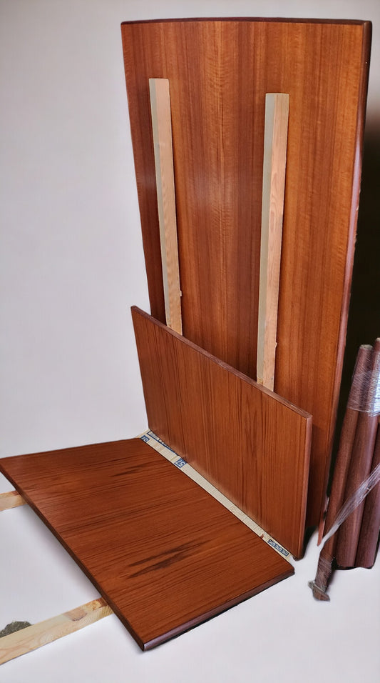REFINISHED Danish Mid Century Modern Teak Table Extendable Self Storing 57"-77"