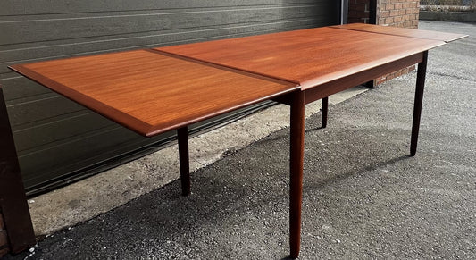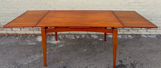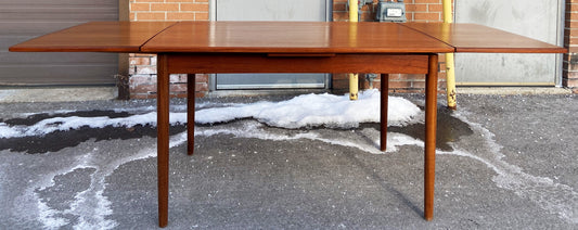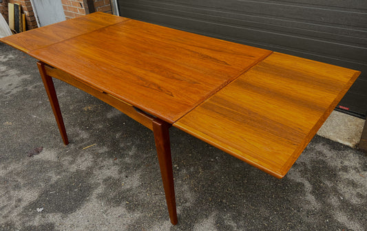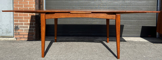 REFINISHED Danish Mid Century Modern Teak Table Draw Leaf, 55"-97"