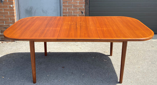 REFINISHED Danish Mid Century Modern Teak Table Draw Leaf, 48"- 85" Perfect