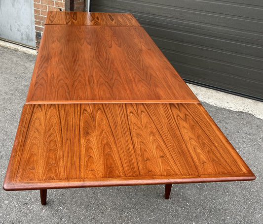 REFINISHED Danish Mid Century Modern Teak Table Draw Leaf, 51"-90", Perfect