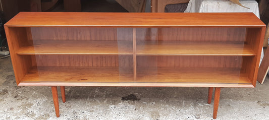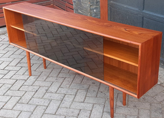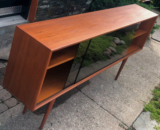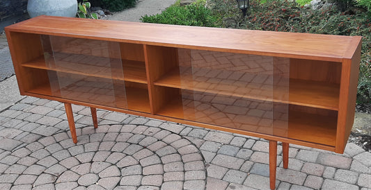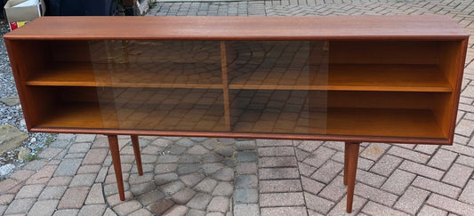 REFINISHED Danish Modern Teak Bookcase Display w sliding glass doors 71"narrow, PERFECT