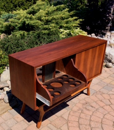 REFINISHED MCM Teak Bar Buffet TV Console w Light- Compact 46"
