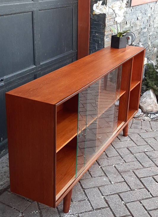 REFINISHED Low MCM Teak Bookcase w sliding glass doors by Punch Design, 5 ft, PERFECT