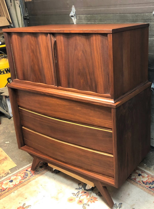 REFINISHED MCM American Sculpted Walnut Tallboy Bureau 36” PERFECT