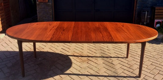 REFINISHED MCM Oval Teak Table w 3 Leaves by Punch Designs 64"-100"