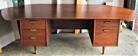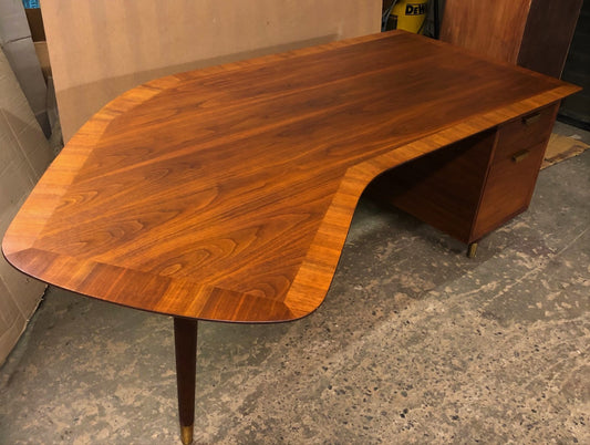 REFINISHED Large MCM Walnut Office Suite PERFECT (Desk Boomerang Shape & Office Console 83"/96")