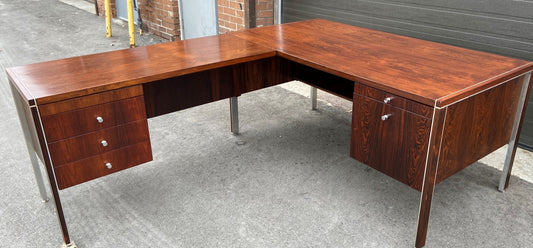 REFINISHED MCM Executive Rosewood Desk L-Shaped by H.Miller for Biltrite