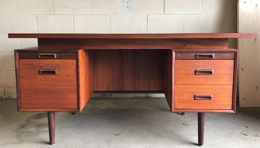 REFINISHED MCM Executive Teak Desk with Floating Top and Finished Back