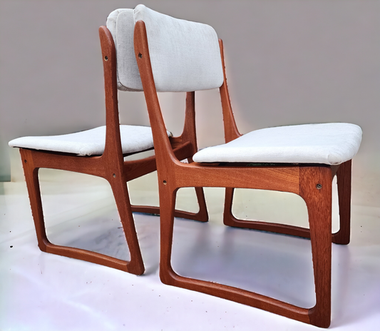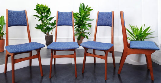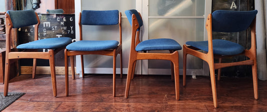 4 REFINISHED REUPHOLSTERED Danish Mid Century Modern Teak Chairs by Erik Buch