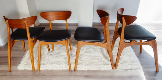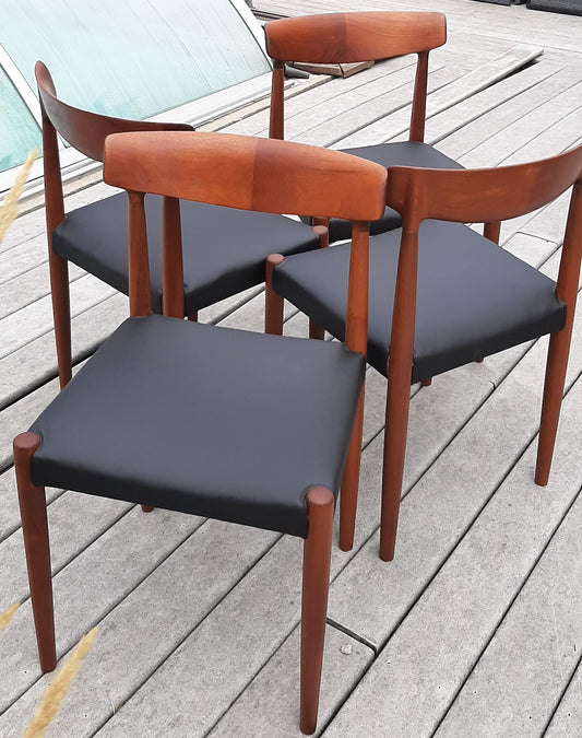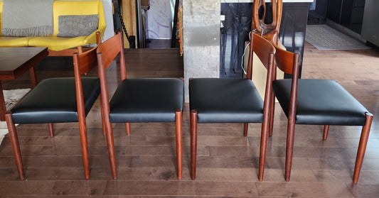 4 REFINISHED MCM Teak Chairs by Knud Faerch REUPHOLSTERED in Genuine Leather, model 343, PERFECT
