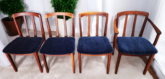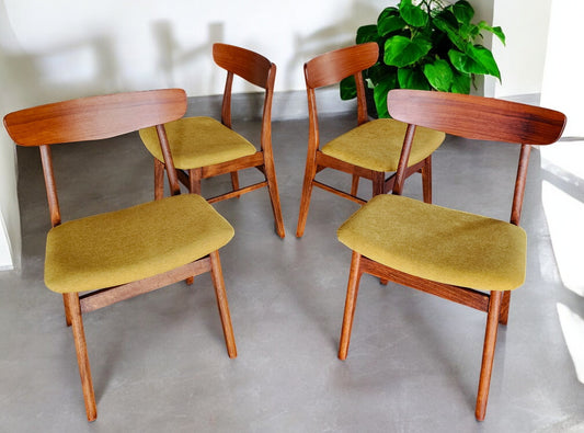 4 REFINISHED REUPHOLSTERED Danish MCM Teak Chairs, wool mohair seats