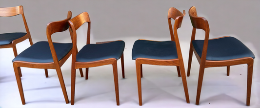4 REFINISHED Danish Mid Century Modern Teak Chairs, Moller style