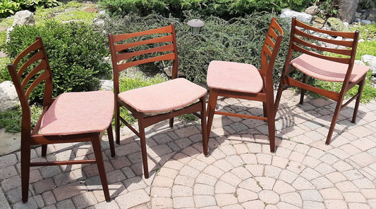 4 REFINISHED REUPHOLSTERED Danish Mid Century Modern Teak Chairs Ladder Back