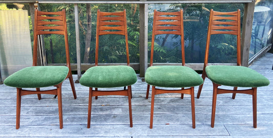 4 REFINISHED REUPHOLSTERED Danish Mid Century Modern Teak Chairs by Korup Stolefabrik