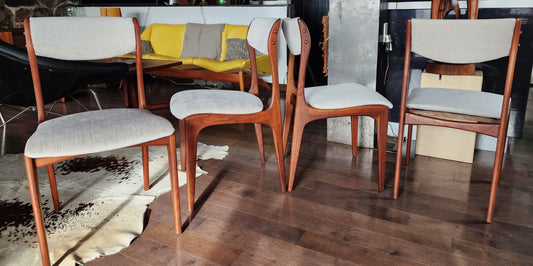 4 REFINISHED REUPHOLSTERED Danish Mid Century Modern Teak Chairs, Moller style