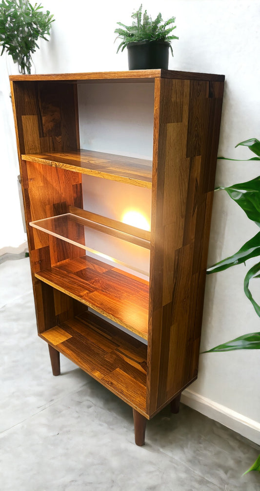 REFINISHED MCM Rosewood Patchwork Cabinet w shelves & lighting 28"