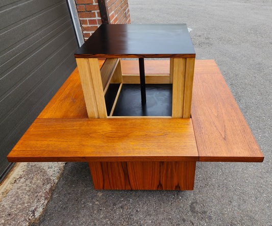 REFINISHED MCM Rolling Teak Coffee Table w Hydraulic Pop-Up Bar by Kai Kristiansen