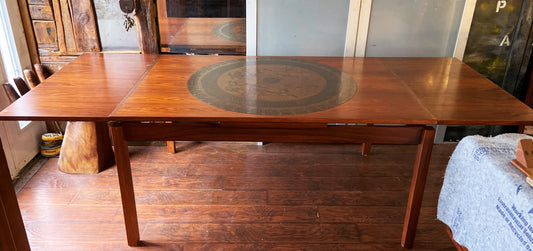REFINISHED MCM Rosewood Draw Leaf Table with copper inlay 60"-100" large