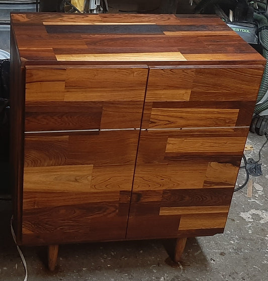 REFINISHED MCM Rosewood Patchwork Cabinet with 2 doors 28", perfect