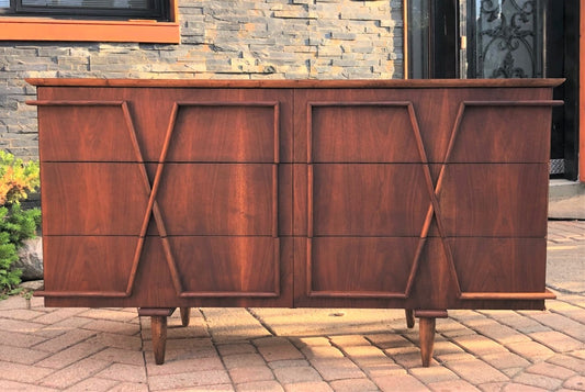 REFINISHED MCM Sculptural Walnut Dresser 6 drawers 55"