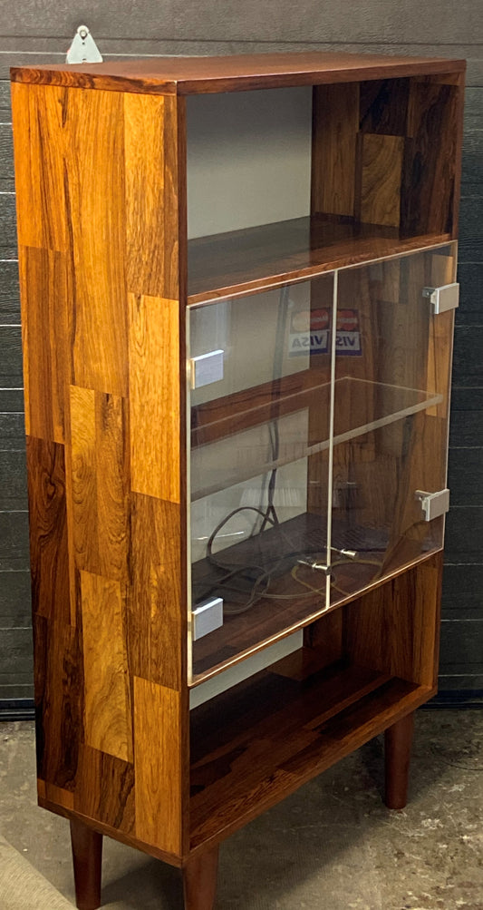 REFINISHED MCM Rosewood Patchwork Display Cabinet Bookcase 28" with lighting, perfect