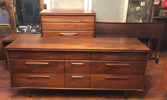 REFINISHED MCM SOLID TEAK Dresser, Tallboy, Nightstands, Bed frame by Imperial- PERFECT