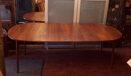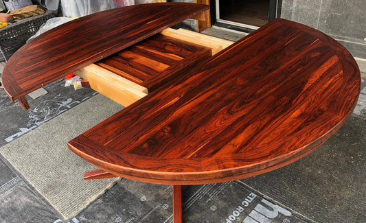 REFINISHED MCM Rosewood Table Round to Oval by Troeds 48"-61" PERFECT, treated for durability