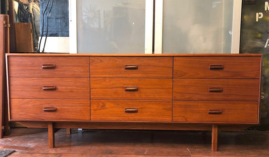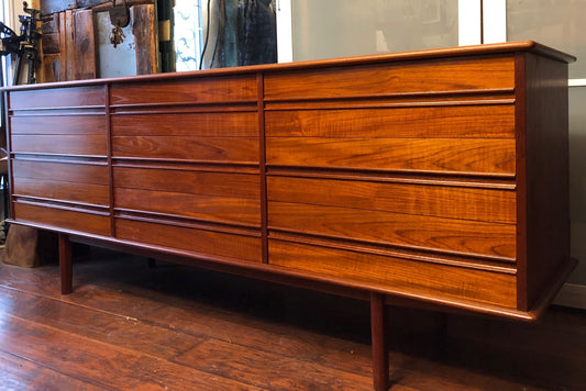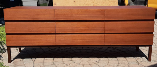 REFINISHED MCM Teak 9 drawers Dresser low profile 74.5", PERFECT