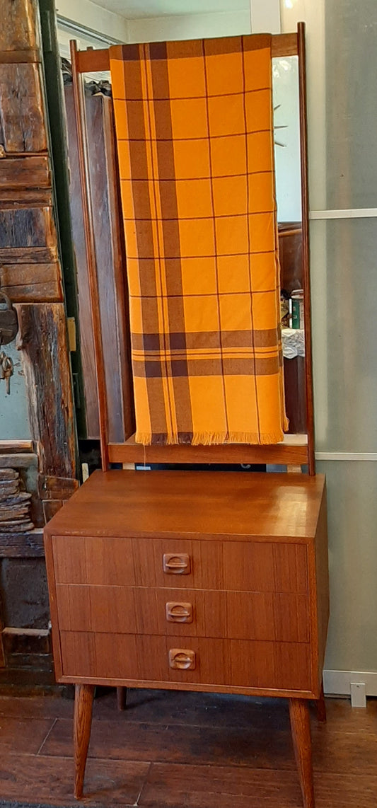 REFINISHED MCM Teak 3 Drawer Chest Cabinet & Mirror