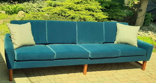 REFINISHED MCM Teak 4-Seater Sofa w NEW performance velvet upholstery, like NEW