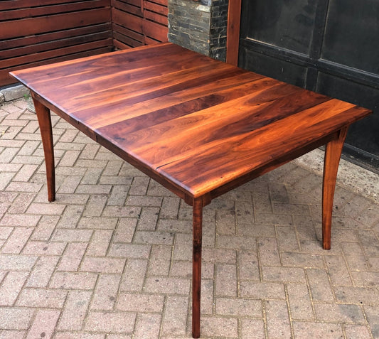 REFINISHED MCM Solid Walnut Table w 1 leaf 56"-65.25", seats 6-8, PERFECT, treated for durability