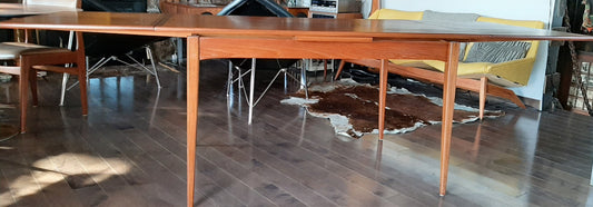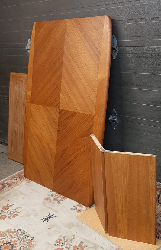 REFINISHED MCM Teak Draw Leaf Table with 2 Extension Leaves, 54-95"
