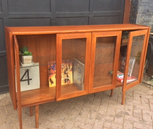 REFINISHED MCM Teak Display Bookcase w tinted glass doors 6 ft, perfect
