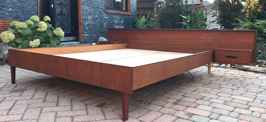 REFINISHED MCM Teak Dresser 9 Drawers & Queen Platform Bed with attached nightstands