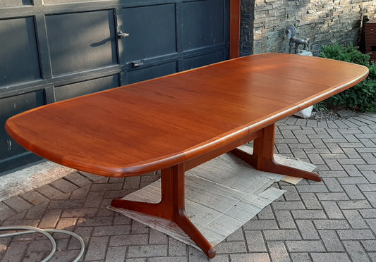 REFINISHED MCM Teak Dining Table w 2 Leaves, large, PERFECT, 63"-100"