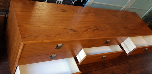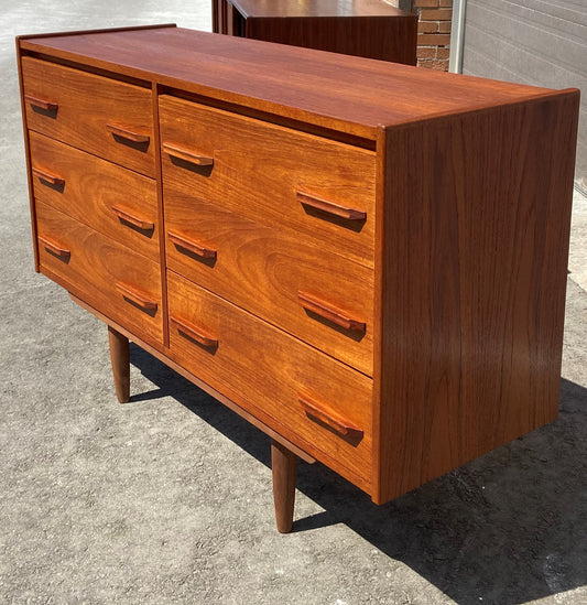 REFINISHED MCM Teak Dresser 6 Drawers, 5 ft, narrow and low