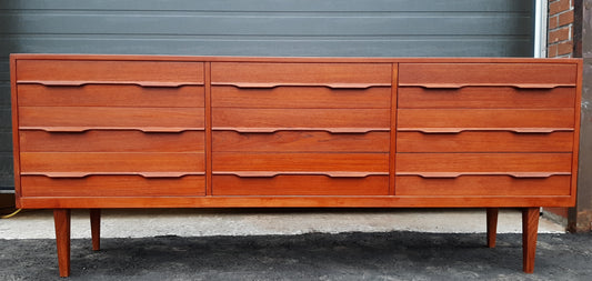 REFINISHED MCM Teak Dresser 9 Drawers, 69", narrow and low