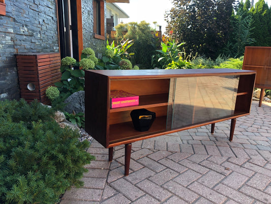 REFINISHED MCM Teak Display Bookcase Records 65"