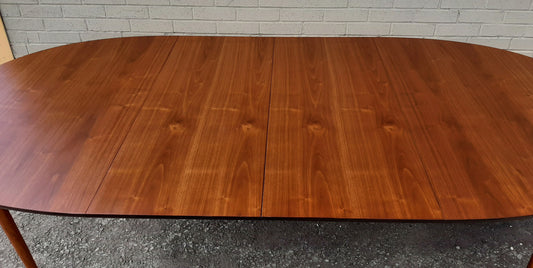 REFINISHED MCM Teak or Walnut Dining Table Extendable Oval w 2 leaves PERFECT 57" - 92", treated for durability