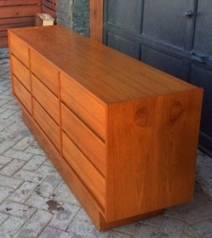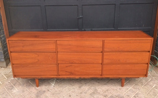 REFINISHED MCM Teak Set of Dresser 9 Drawers and Talboy, PERFECT