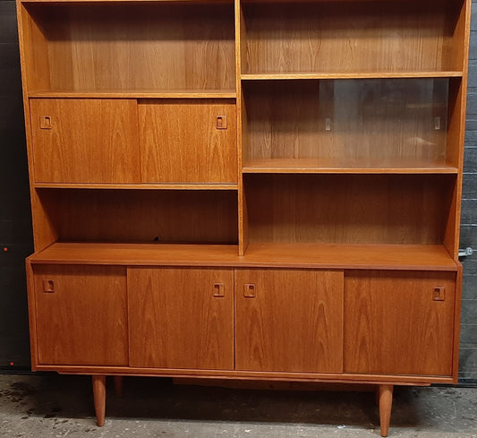 REFINISHED MCM Teak Sideboard & Topper Display 70.5" perfect, 2 parts