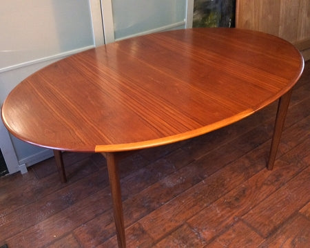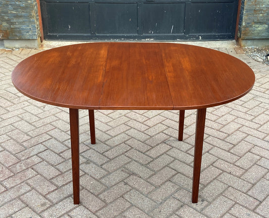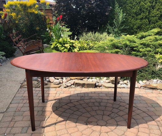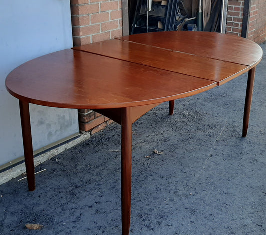 REFINISHED MCM Teak Table Oval w 1 Leaf 60.5"-76.5", PERFECT