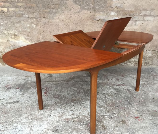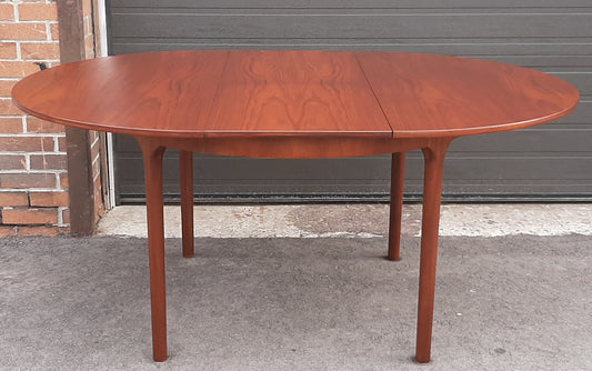 REFINISHED MCM Teak Table Round to Oval w 1 Leaf 42-56"
