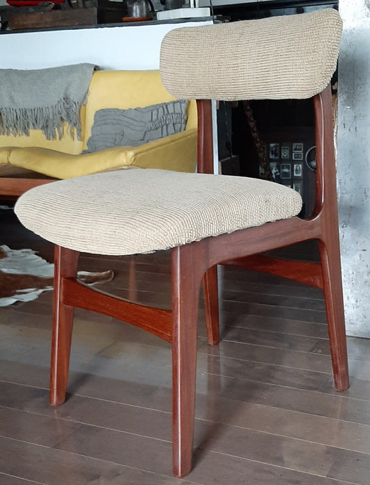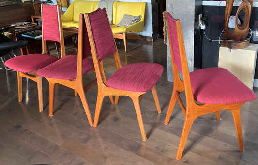 4 RESTORED MCM Solid Teak Chairs, includes new upholstery, each $284
