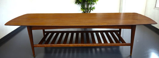 REFINISHED Mid Century Modern RUSPAN Surfboard Coffee Table w Shelf, 60"