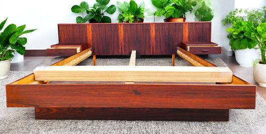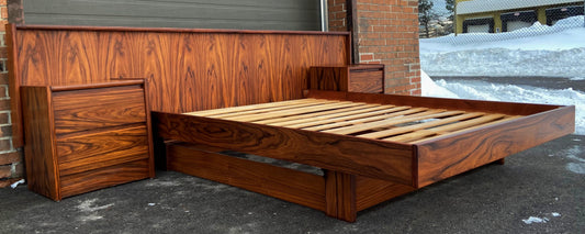 REFINISHED Mid Century Modern Rosewood Bed KING w Floating Nightstands