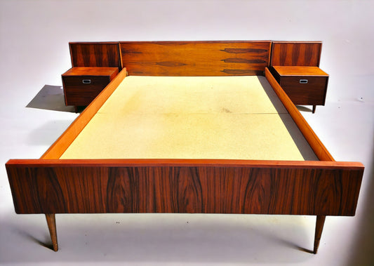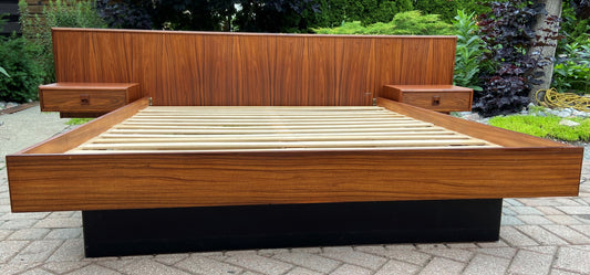 REFINISHED Mid Century Modern Rosewood Bed w floating nightstands Queen, PERFECT