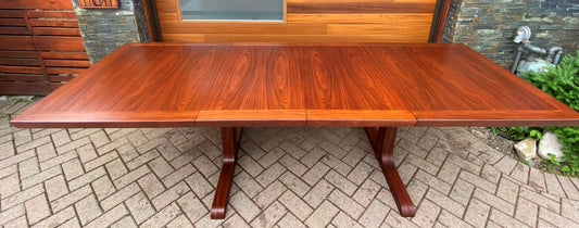 REFINISHED Mid Century Modern Rosewood Table w 2 Leaves, 64.5"-104", PERFECT