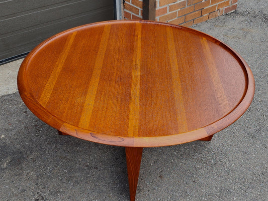 REFINISHED Mid Century Modern Round Coffee Table w Raised Edge D41"