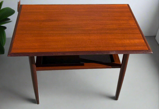 REFINISHED Mid Century Modern Teak & Glass Accent Table, perfect